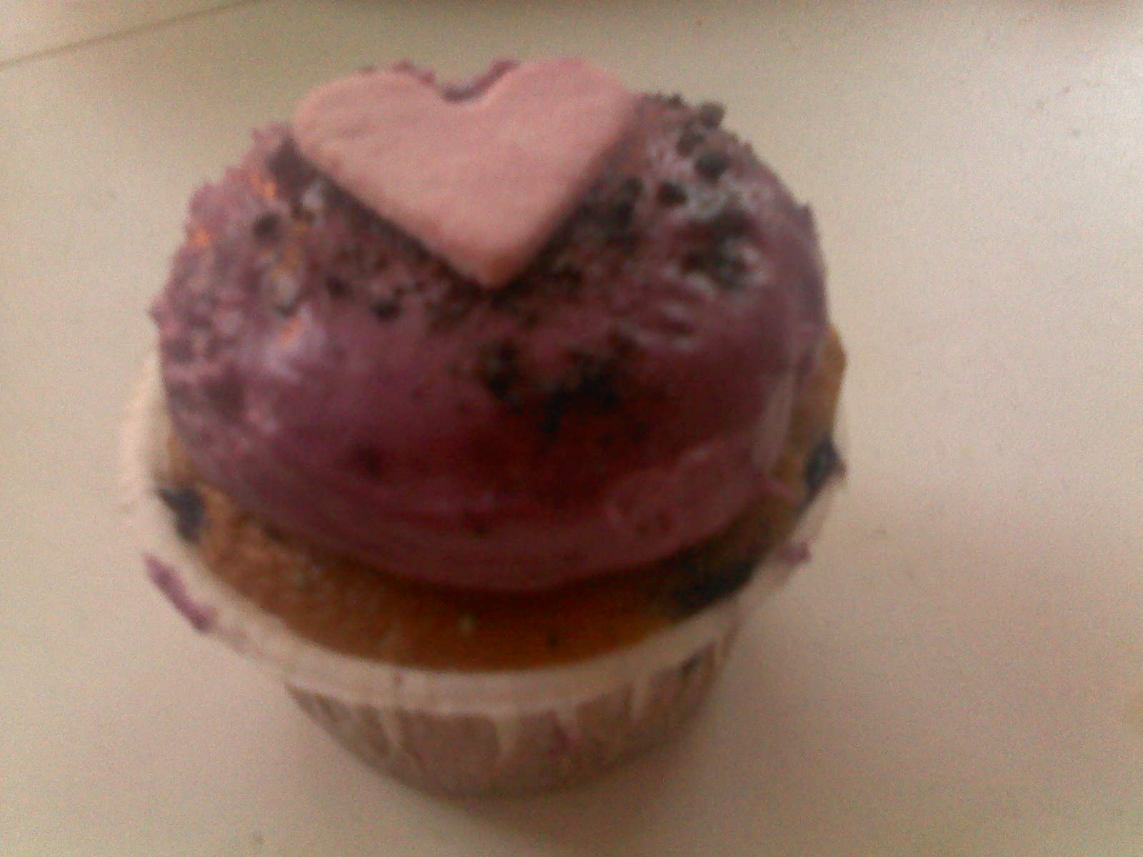 Eftersom mitt cupcakes-bak igår failade totalt, så bestämde jag mig för att köpa mig en färdig idag. Det är ju trots allt alla hjärtans dag, eller snarare alla jävla hjärtans dag. Jag har inte mått så bra idag, men efter mitt möte på MISA gick jag och köpa denna supersöta cupcake!
