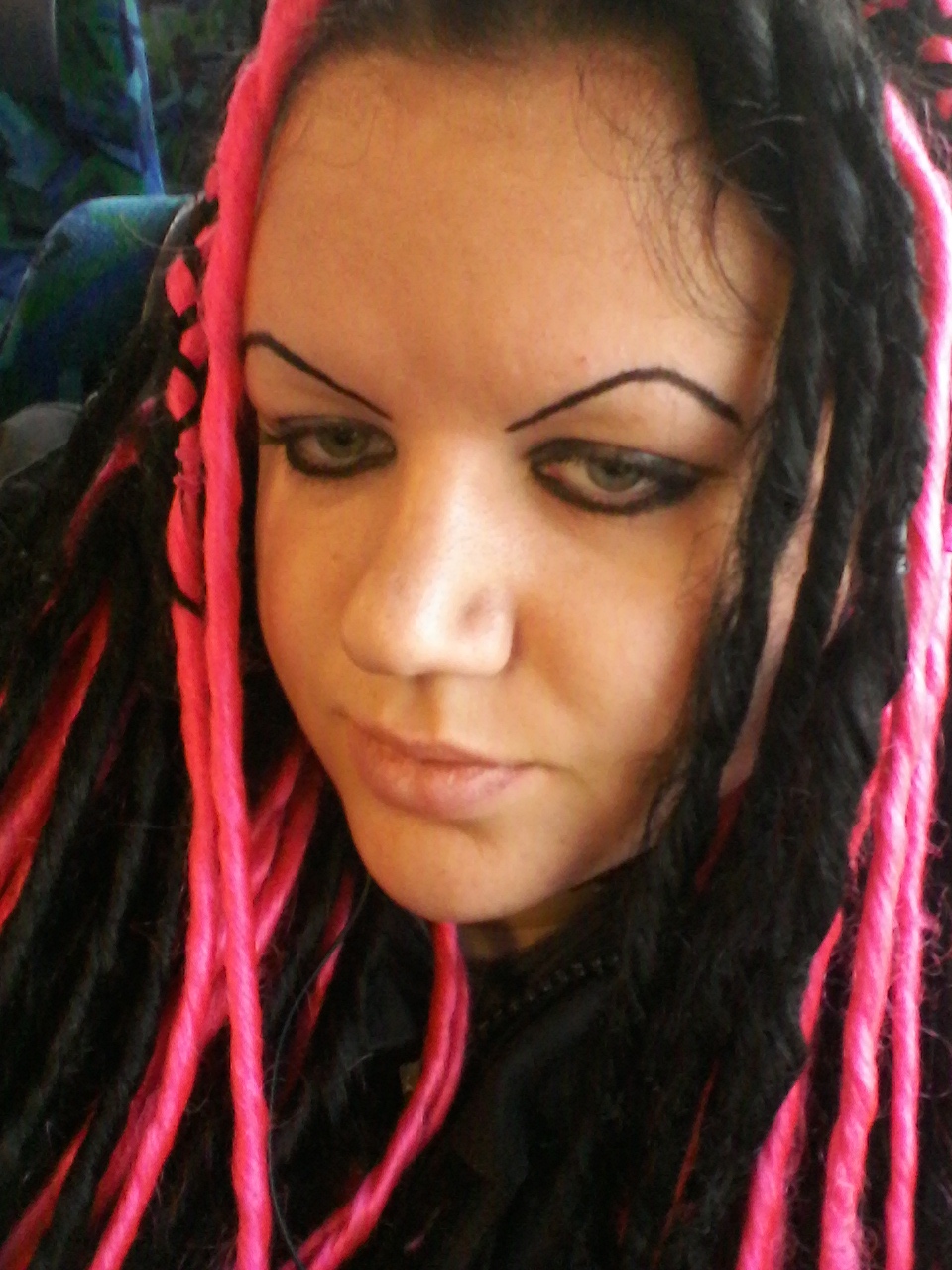 Mer bilder på de svarta/rosa syntetdreadsen och häng med Karin