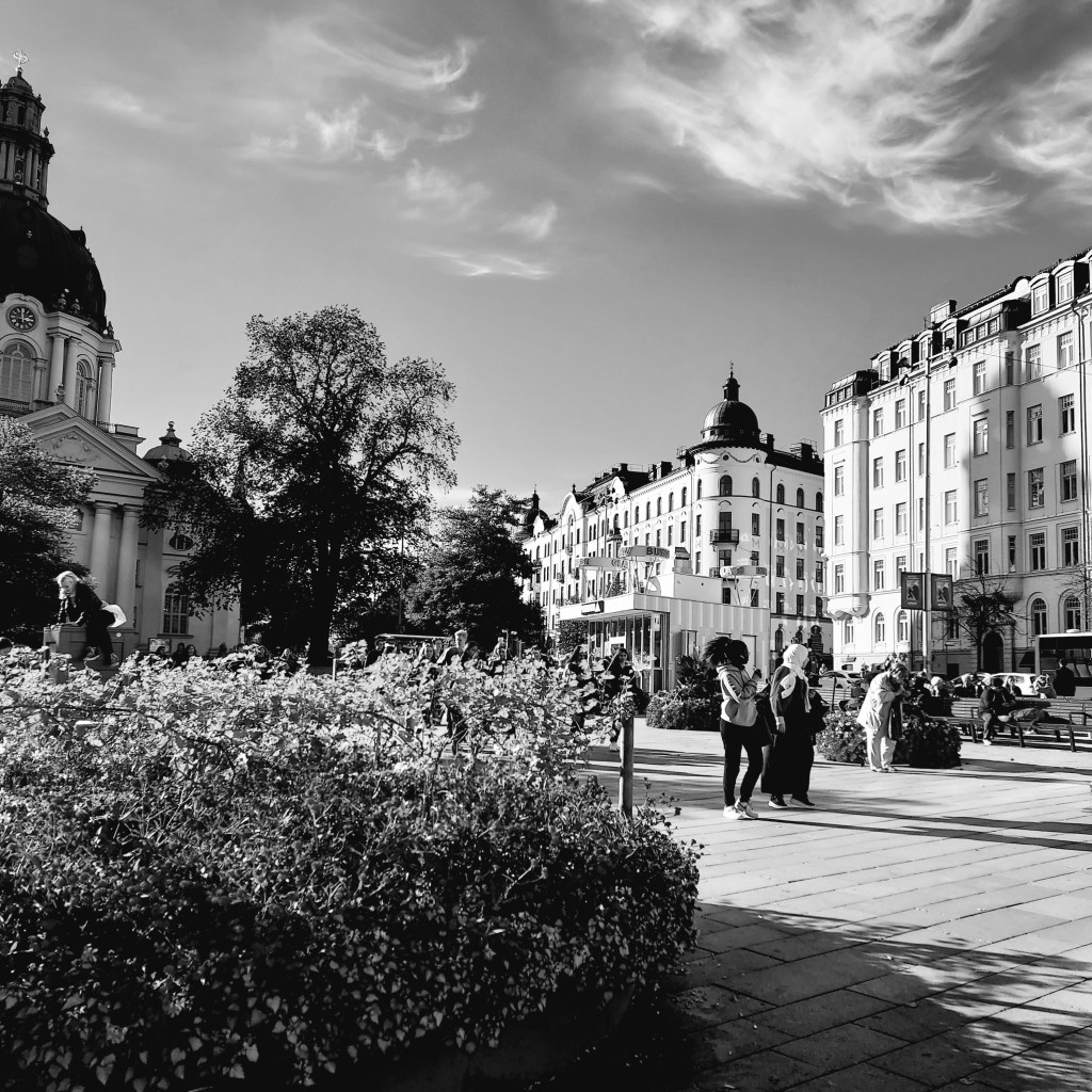 Jag tänkte dela med mig av dagens Stockholmsbilder. De är tagna längs spårväg 7 mellan Djurgården och city – när jag själv åkt. Gråskale- filter, eller tecknat vid behov. Snarare när jag tyckte att bilden blev snyggare då.