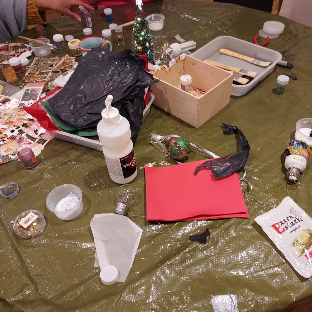 Jag och en personal gick med återvinningen nyss. Snart ska vi gå och kolla i affärer, så att jag ska handla det sista.