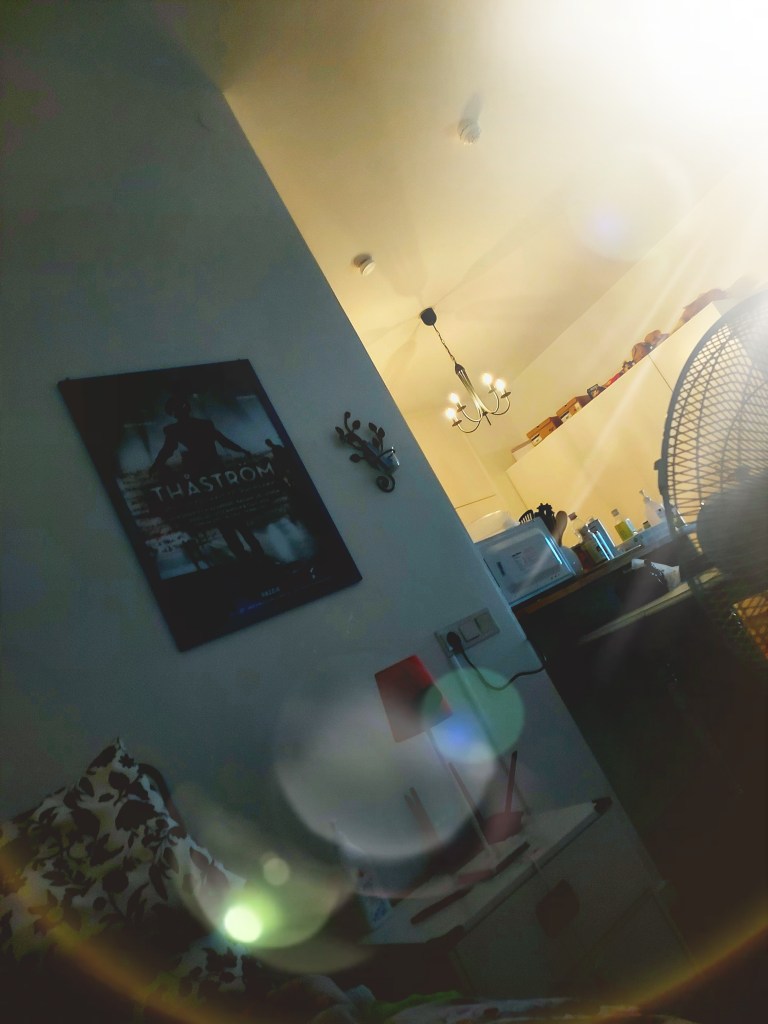 När det är för varmt hemma, så att svetten dryper – har jag svårt att sätta sig vid datorn och skriva. Det blir mycket bloggande från telefonen. I dag känner jag mig ganska trött, men vet inte riktigt varför. Jag höll på att somna när jag vilade på sängöverkastet. Medan fläkten skär osynliga mönster i luften och Spotify sjunger SlipknoT, så känns det som att jag tänker på annat.
