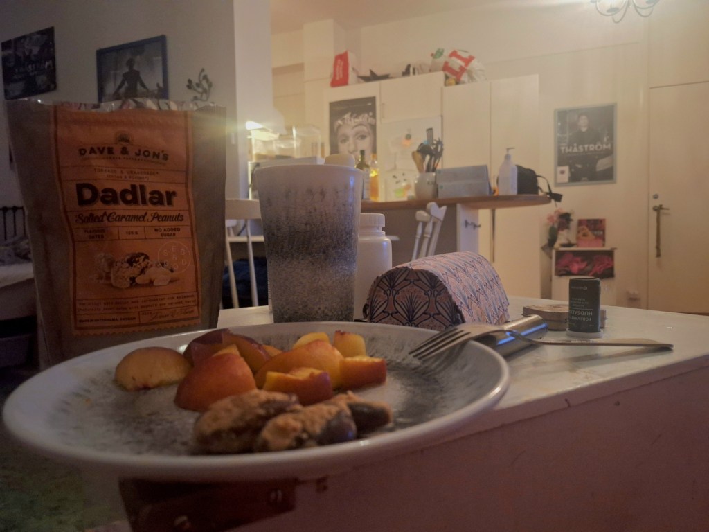 Jag fick glass av Ylle i födelsedagspresent, så den orangea 3 vänner-smaken ”choklad, jordnötterich kola” gjorde mig sällskap i går kväll.