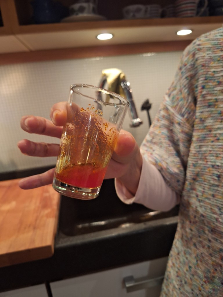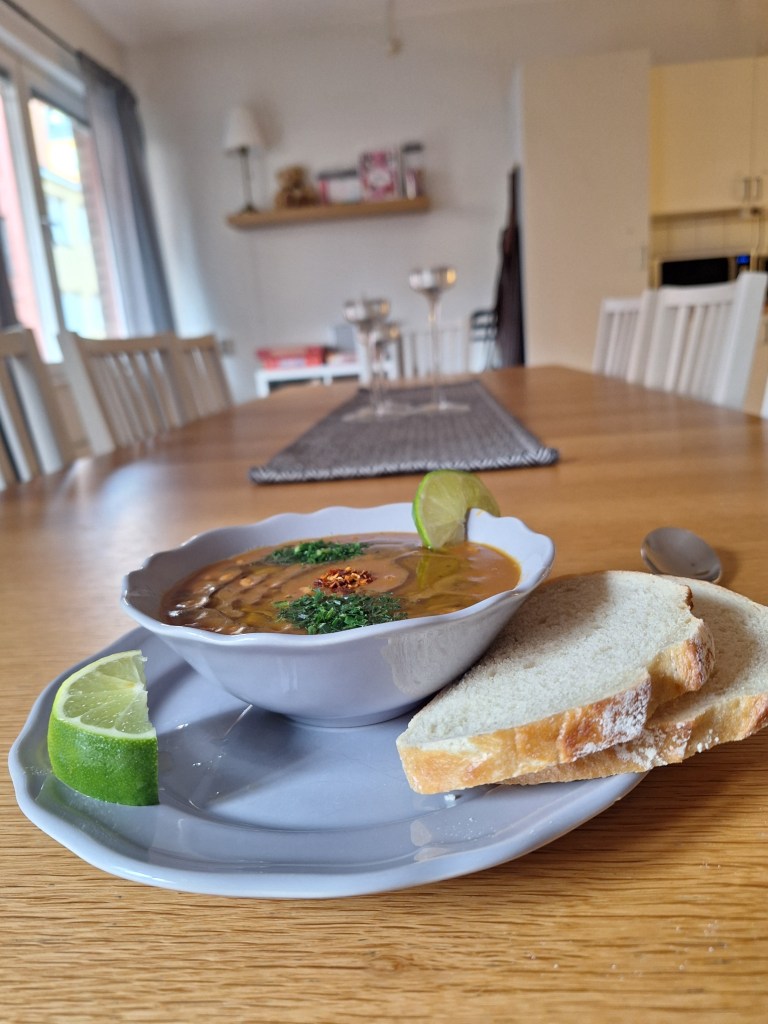 Jag blev bjuden på en jättegod persisk soppa. Den var gjord på bland annat bruna bönor och är toppad med chili, lime och persilja. Om en gillar rostad lök fungerar det att ha till.