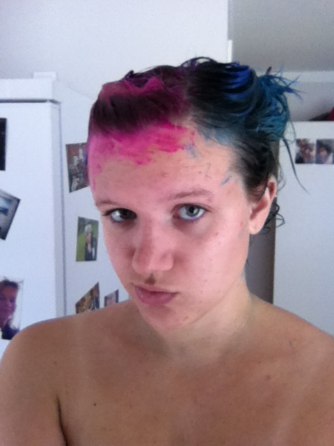 Johanna köpte rosa hårfärg, så jag tog lite jag med!