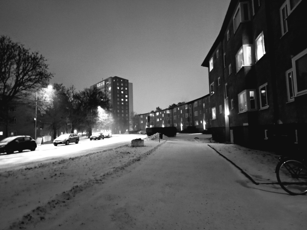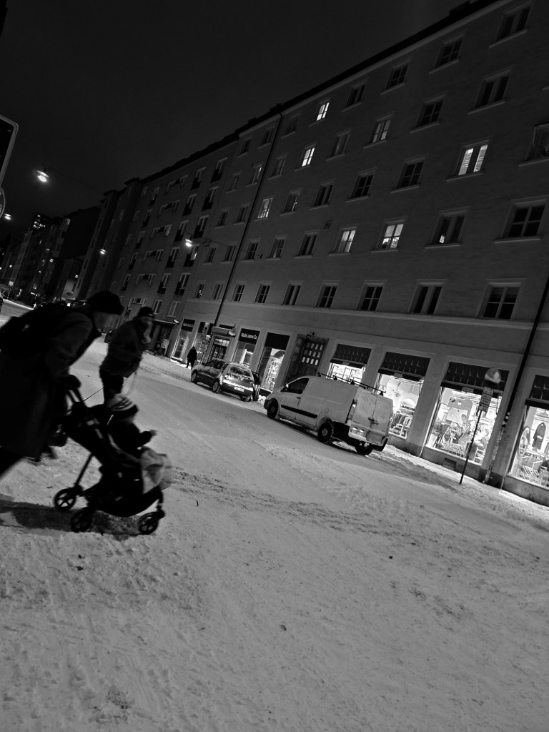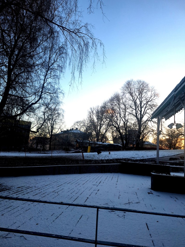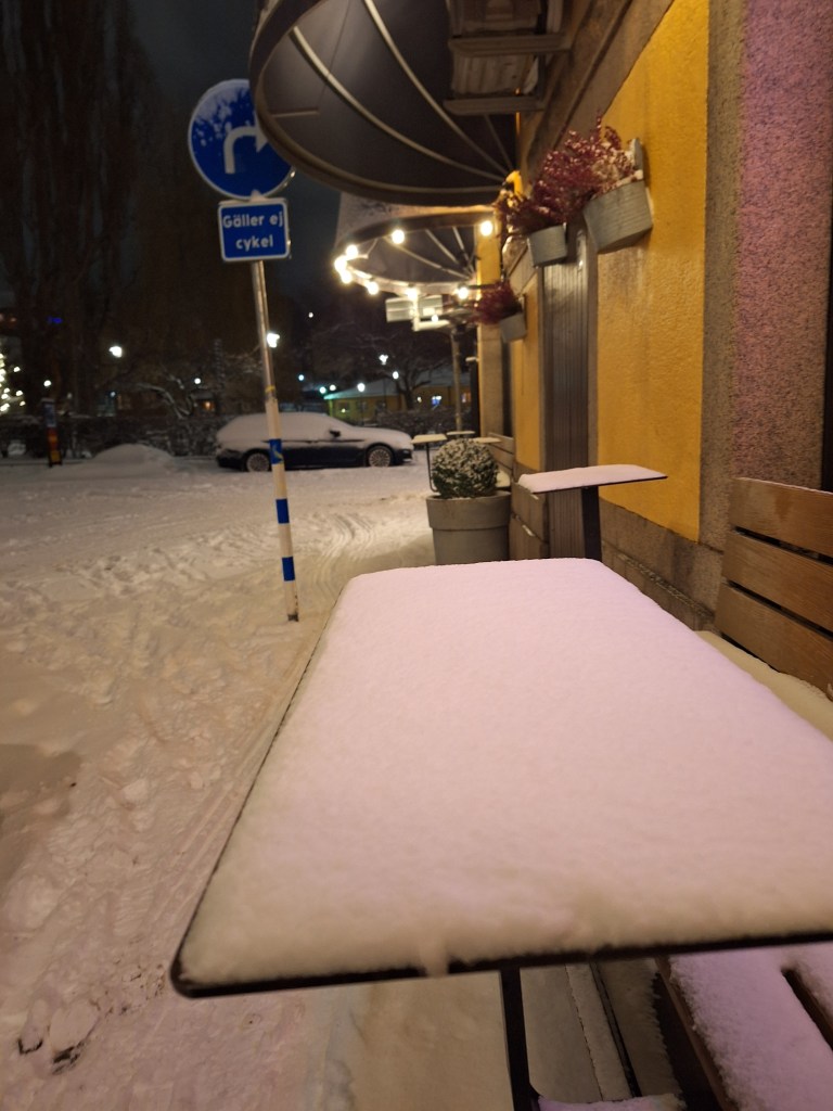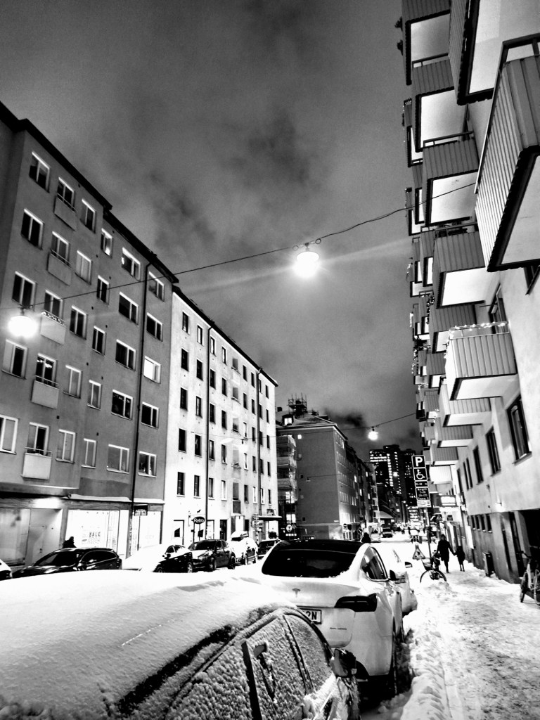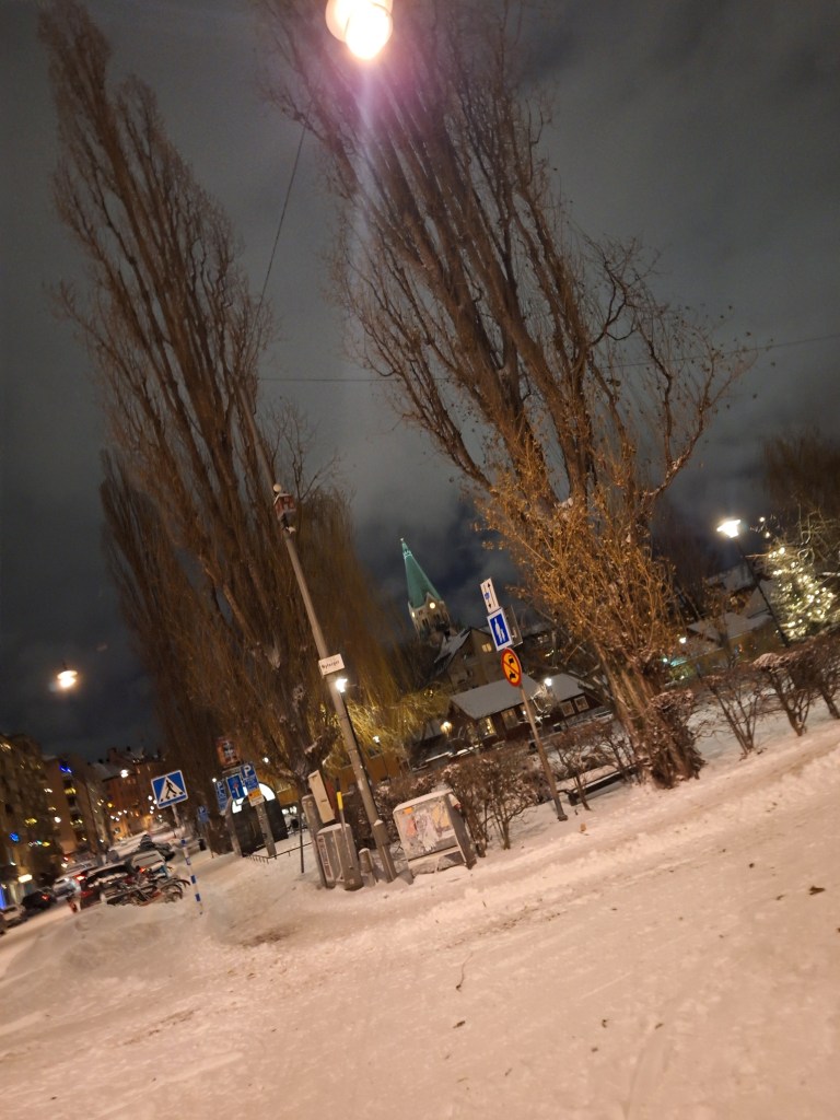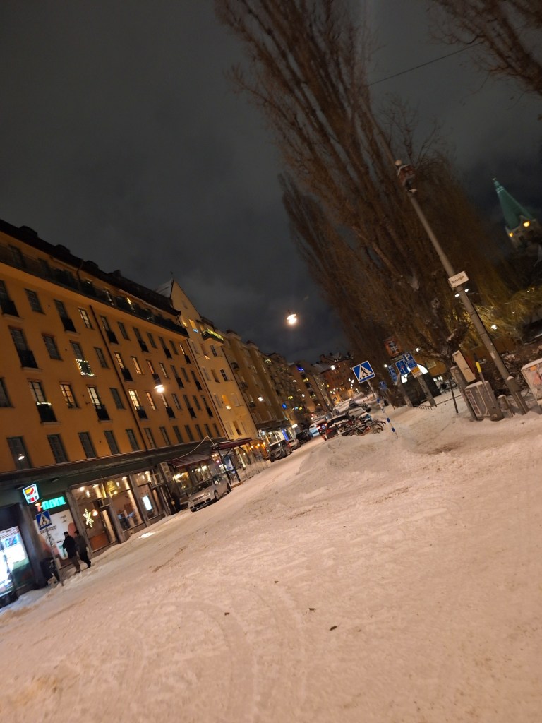 I början av dagen gick jag en promenad i ett snöigt och några minusgrader kallt Stockholm, I går bytte jag till vintersskorna, flyttade de anpassade inläggssulorna från de andra till dem, Det var på något sätt uppfriskande, även om tankarna inte lämnar mig ifred heller, men ibland blir de klarare. Lite av en påträngande karaktär.