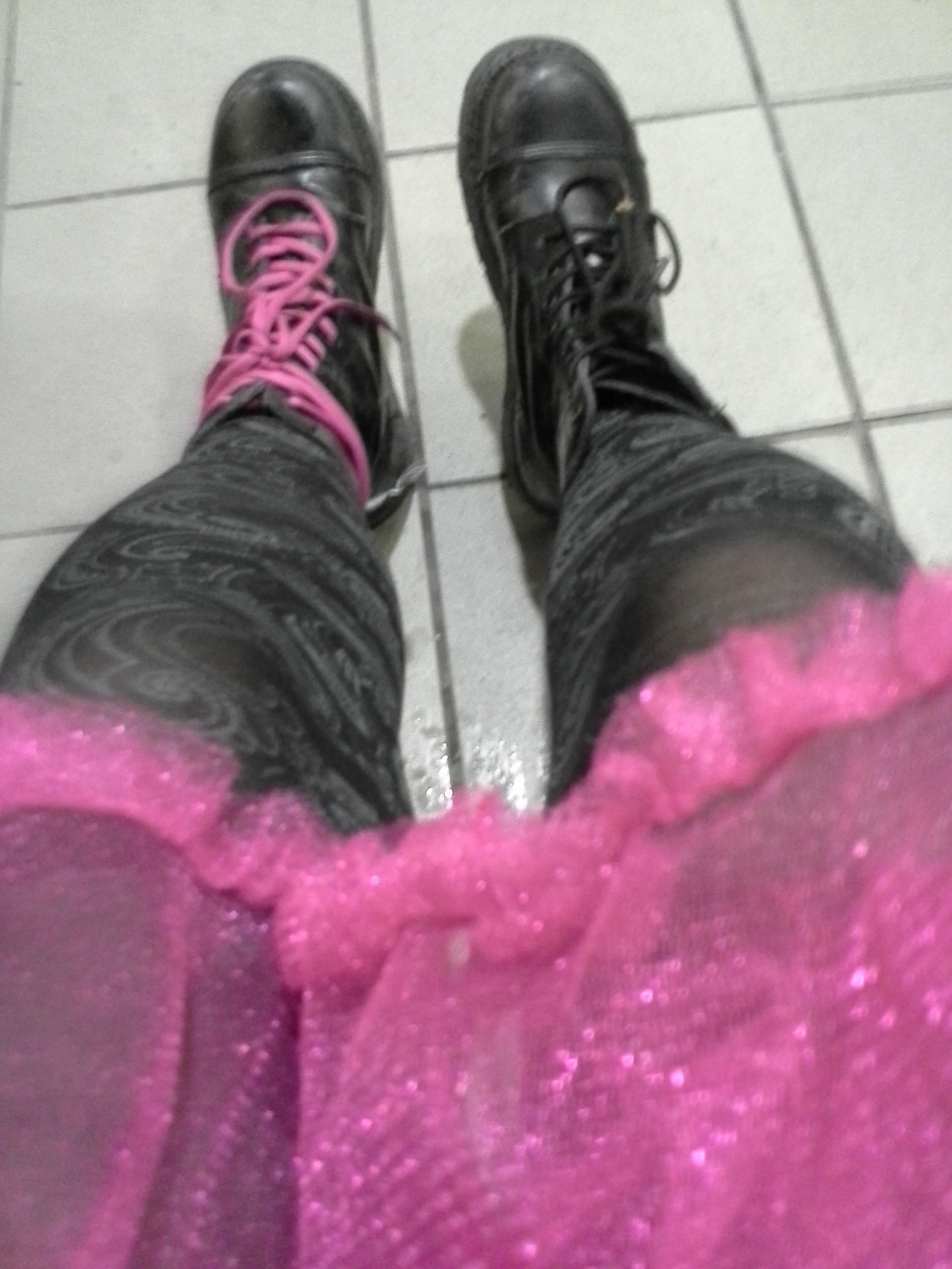 Kjol, strumpbyxor och skor i kväll.